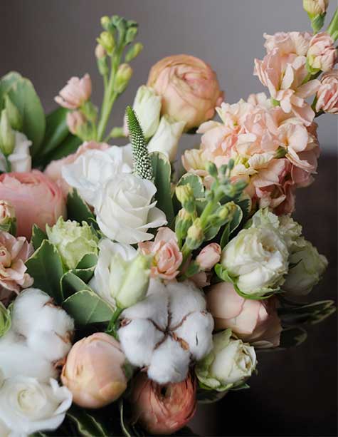 いつでも新鮮で季節に合った生花をご提供します。フラワーアレンジメントには上質な花材が欠かせません。質のよいお花を使うことで、完成した作品はより美しくなります。当サロンではいつも高い品質のお花をご用意しています。